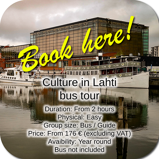 Join us for a sightseeing tour that opens the door to Lahti’s rich and diverse cultural life! This bus tour takes you to the city’s most spectacular landmarks and tells the stories behind them—from the legendary Eliel Saarinen and Alvar Aalto to today’s vibrant visual arts.