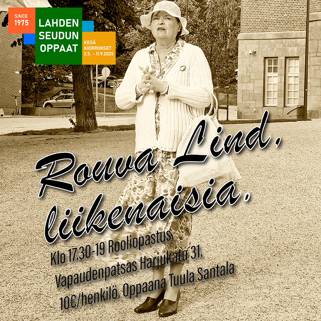 Kesän 2025 kävelykierrokset, 10€. Myös bussikierroksia tarjolla.