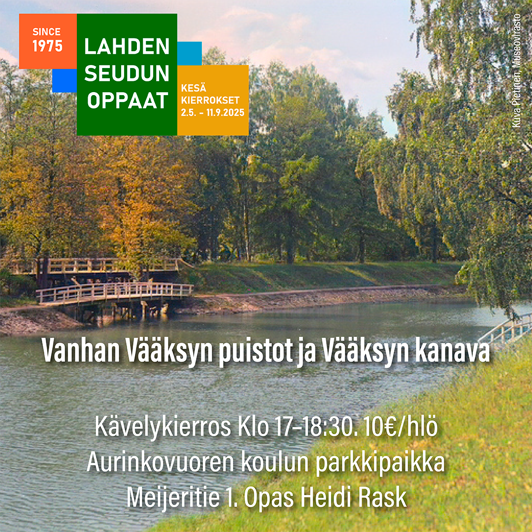 Kesän 2025 kävelykierrokset, 10€. Myös bussikierroksia tarjolla.